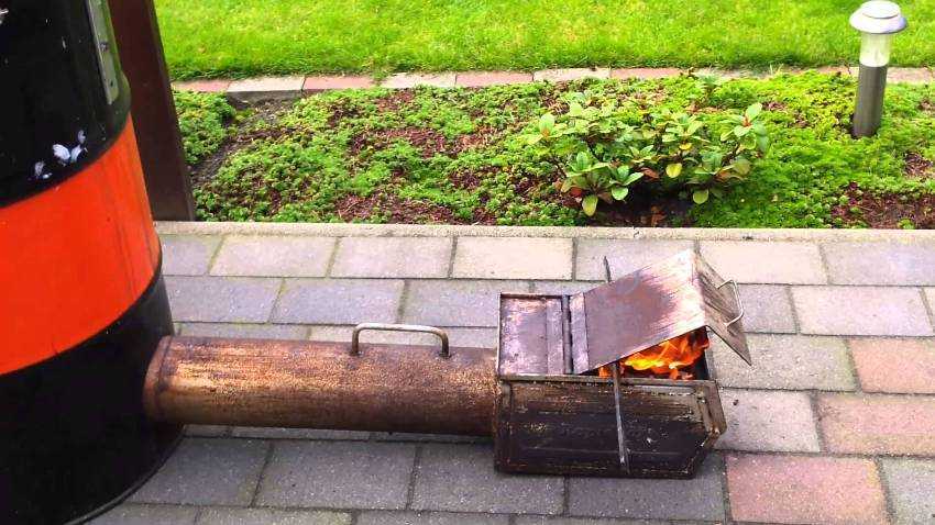 Для введения в эксплуатацию устройства остается поджечь щепу и запустить нагнетатель. Можно усовершенствовать конструкцию, прикрутив к нижней части крышку и зафиксировав стеклянную банку. В нее будет высыпаться зола.