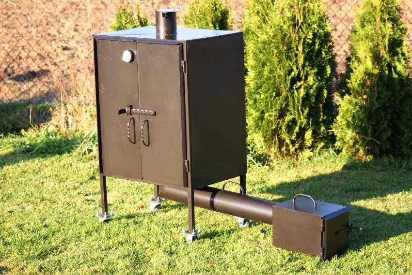 Каждый из вариантов одинаково хорош, поэтому неважно, какой метод обустройства топки будет выбрано. Главным моментом есть то, что нужно правильно сделать дымоход, чтобы дым остывал до нужной температуры прежде, чем попасть непосредственно в коптильню