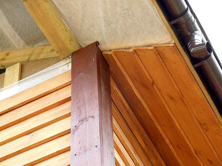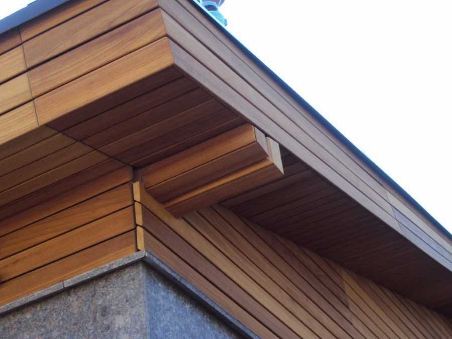 Свес кровли, подшитый деревом Закрытый свес отделывается снизу подходящим материалом. Он должен быть легким, водостойким и прочным. Выбор большой.