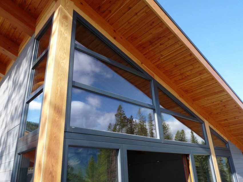 Угла наклона. Для установки под большим углом строят широкие карнизы. Они нужны для защиты от снега и дождя, которые могут падать рядом с домом, а это приведет к разрушению. Для небольшого угла делают маленькие карнизы.