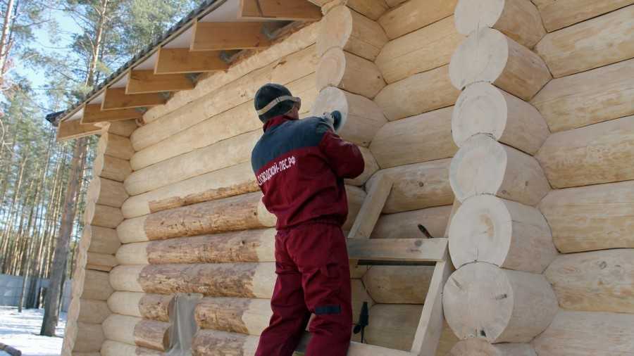 Шлифовать оцилиндрованное бревно нужно сухое, после усадки дома. Перед шлифовкой проверяют конопатку и при появлении щелей делают повторную
