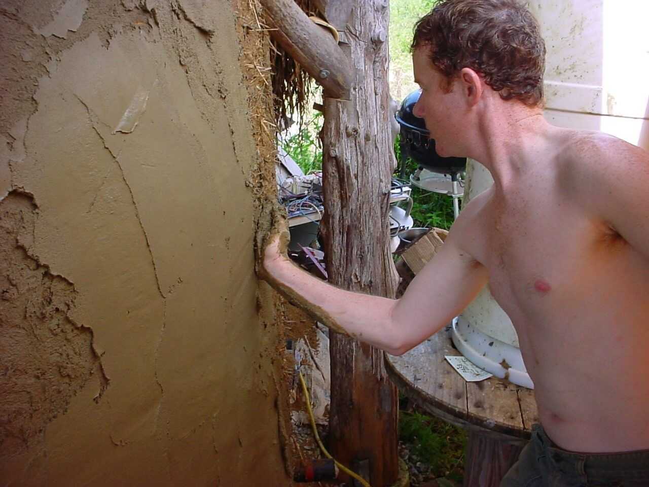 Покрытие стен глиняно-песчаным раствором служит защитным ограждением фасадов строений от атмосферных явлений.