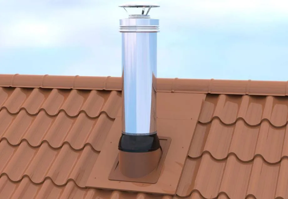 - Дымоходов из нержавейки. Дымоходы из нержавеющей стали, выводящие продукты горения из твердотопливных печей, нагреваются до высоких температур. Поэтому для заделки цели между кровлей и трубой применяют термостойкие силиконовые проходки. Применение обычных моделей из резины возможно, если дымоход подключается к газовому котлу конденсационного типа.