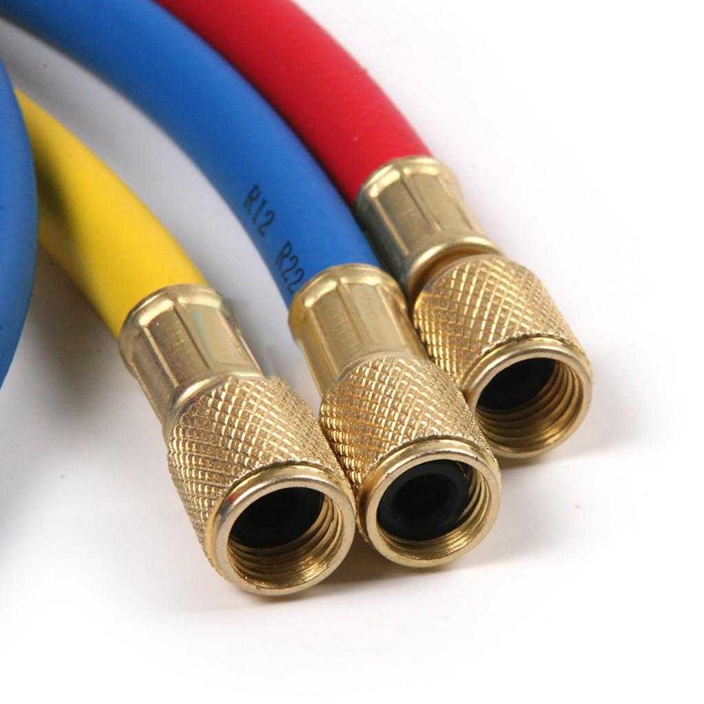 Чтобы определить уровень давления и совершить дозаправку, нужно присоединить к штуцеру манометрический коллектор.
