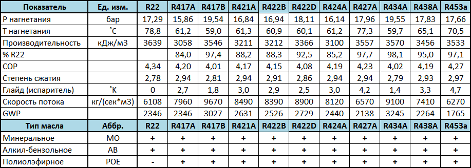 В отличие от R22, хладагент R410a не растворяется полностью в минеральных маслах. В оборудование заправляют полиэфирные синтетические холодильные масла, такие как: