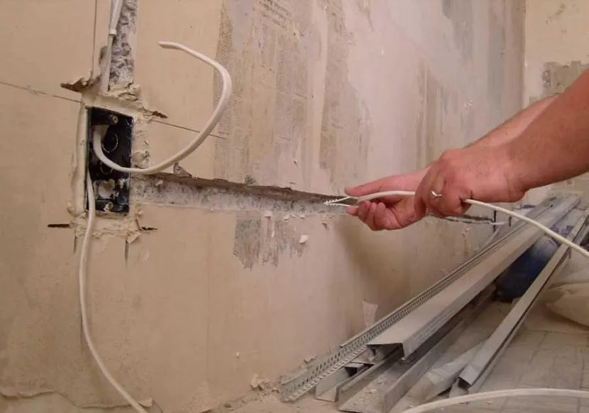 - Прокладка нового кабеля в штробе с дальнейшей фиксацией.