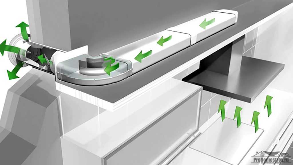 Но подобная система предполагает обязательное наличие вентиляционного короба. Следовательно, несколько усложняется установка, где большое значение будет иметь размещение общего вентиляционного канала. Помимо решения технических проблем, возникает необходимость правильного дизайнерского выбора: кухня с вентиляционным коробом должна быть уютной и эстетичной.
