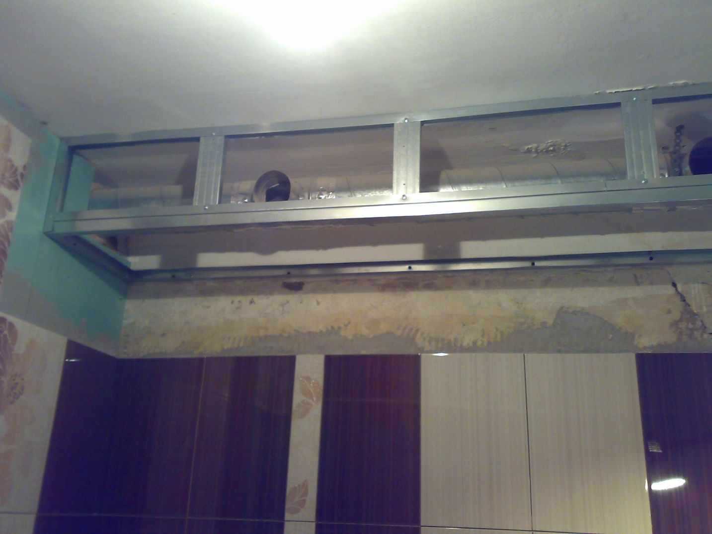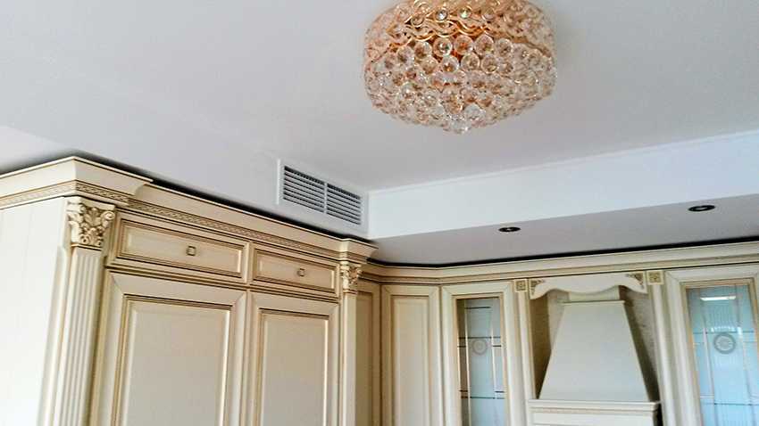 Если нужен короб для вытяжки на кухне пластиковый, то предпочтение отдают плоскому воздуховоду. Его проще скрыть за подвесным потолком или навесными шкафами. Учитывая высоту конструкции, потолок опускают всего на 70-80 мм.