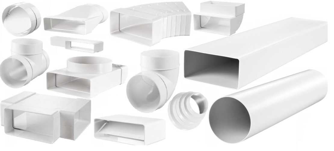 На сегодняшний день наиболее востребованными считаются пластиковые воздуховоды для кухонной вытяжки. Они бывают круглыми и прямоугольными. Последние выглядят довольно эстетично и аккуратно. В свою очередь монтаж круглых изделий осуществляется проще и быстрее (в подобных ситуациях не требуется использовать переходники, чтобы соединить воздухопровод с вытяжкой). Основные достоинства изделий из пластика: