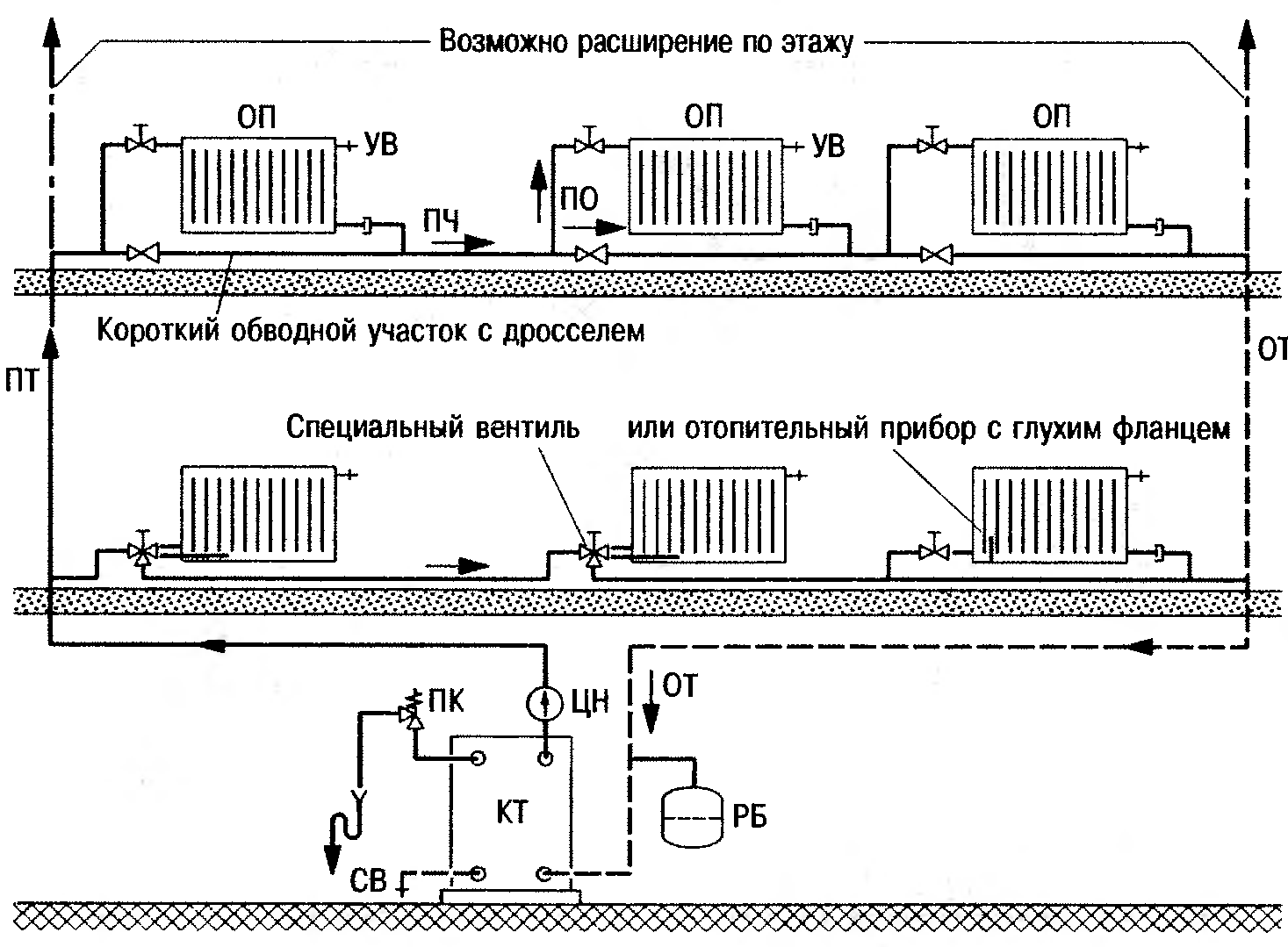 Для обеспечения в однотрубной системе равномерного давления устанавливают циркуляционный насос