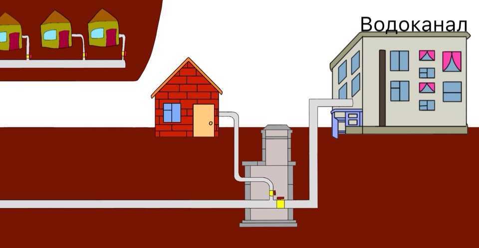 Канава для укладки магистрали должна соответствовать геометрическим размерам, указанным в проектной документации. Стены ревизионного колодца и цоколь дома в месте подвода труб должны быть освобождены от грунта. Врезку могут делать выполнять только представители регионального или городского водоканала, и делается это по следующей схеме: