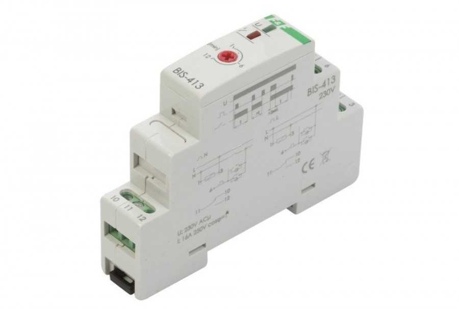Импульсное реле бистобильного типа 411. Оно способно проводить до 12 В. Кнопки устройства параллельно соединяются между собой. При замыкании контактов в одном месте происходит разблокировка цепи в другой точке.