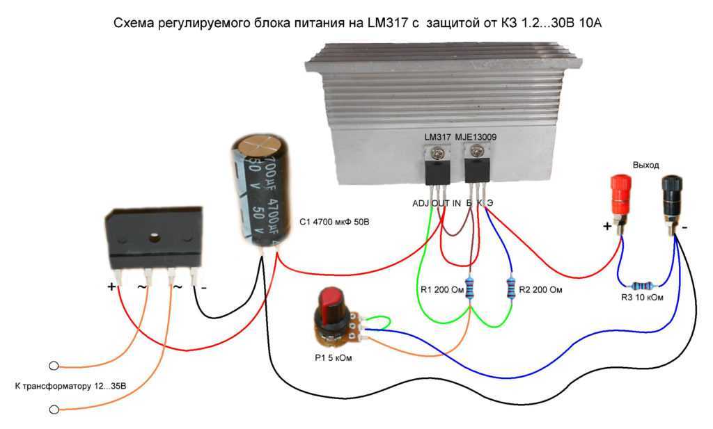 Схема регулируемого блока питания на стабилизаторе LM317 с защитой от КЗ