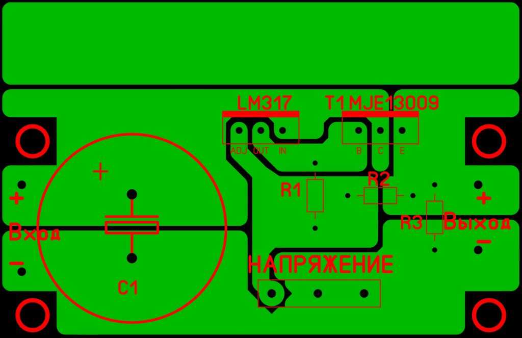 Печатная плата регулируемого блока питания на регуляторе напряжения LM317