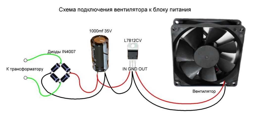Схема подключения вентилятора к блоку питания