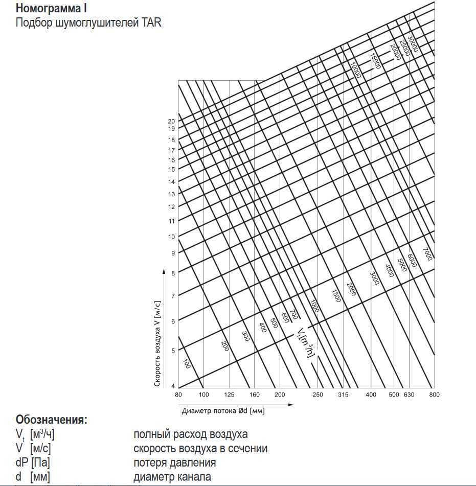 Эта номограмма поможет подобрать параметры шумоглушителя