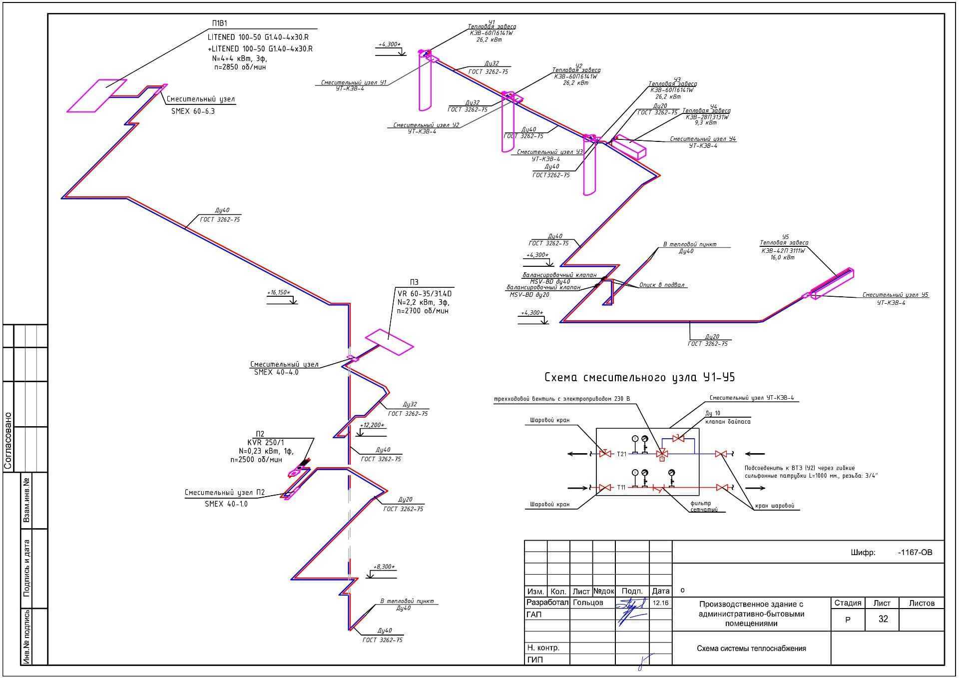 В комплект проекта вентиляции обязательно входит раздел теплоснабжения приточных установок. Приточный воздух зимой должен подогреваться. Для этого чаще всего используется водяной нагреватель и рекуператор. Воздух нагревается в рекуператоре, а затем проходить через секцию водяного нагрева, которая подключается к системе теплоснабжения. Трубы теплоснабжения и всю обвязку нагревателей должен просчитать инженер-проектировщик. Система теплоснабжения должна быть сбалансирована с другими потребителями.