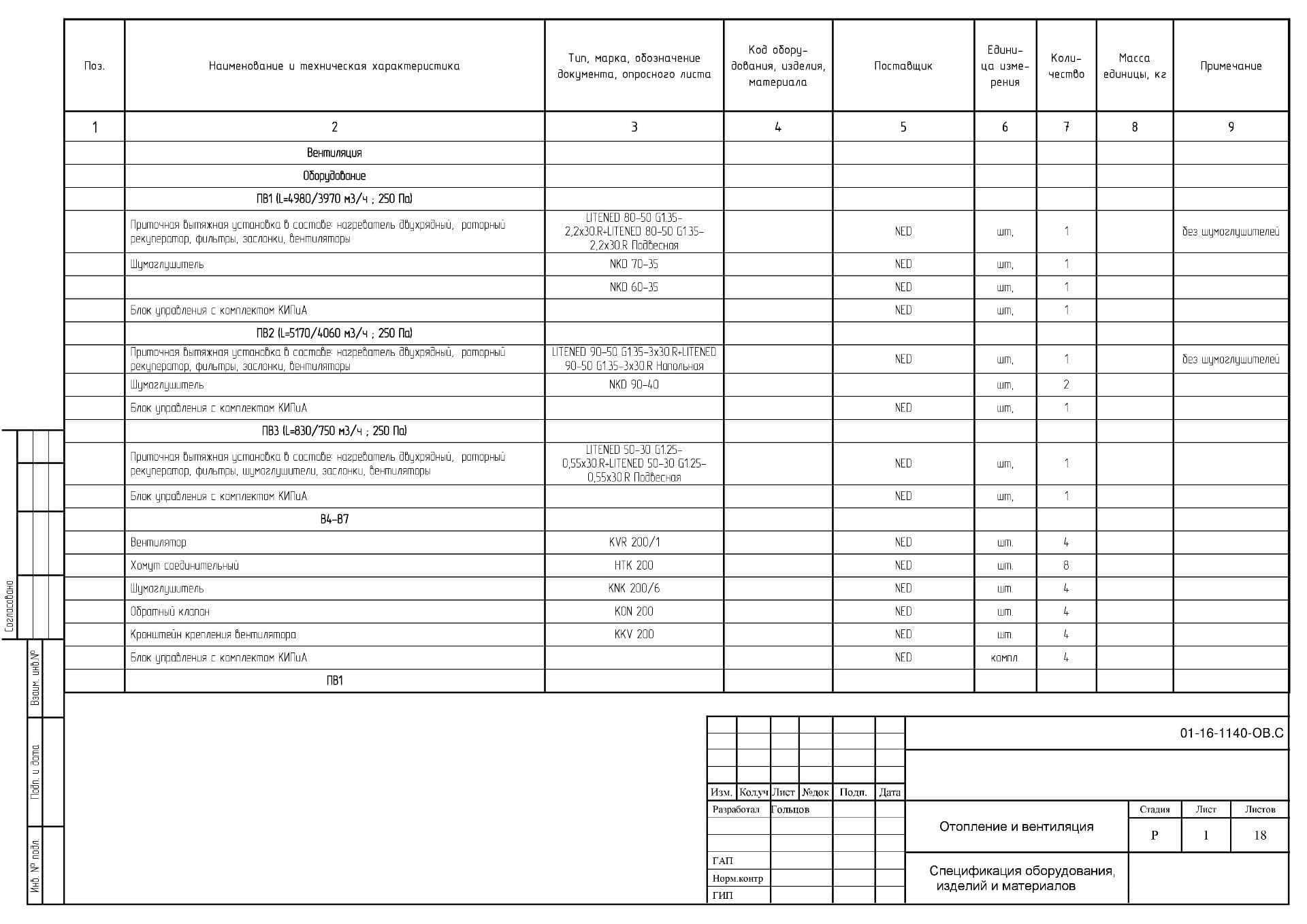- Спецификация оборудования и материалов