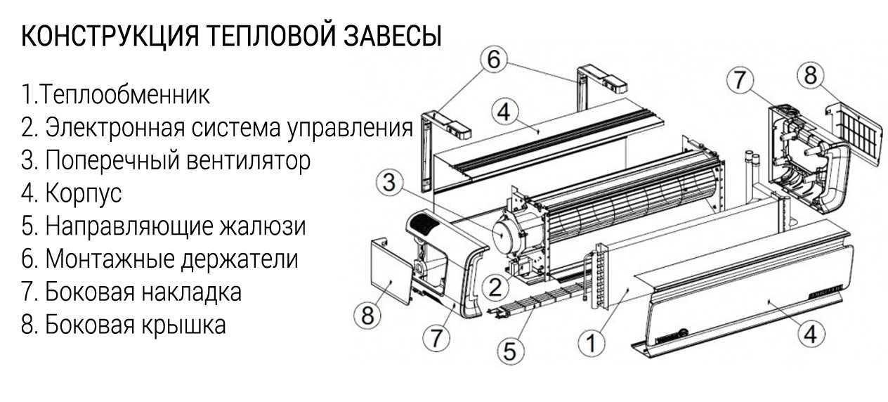 В первую очередь следует рассмотреть из чего же состоит тепловая завеса. Элементами конструкции являются: