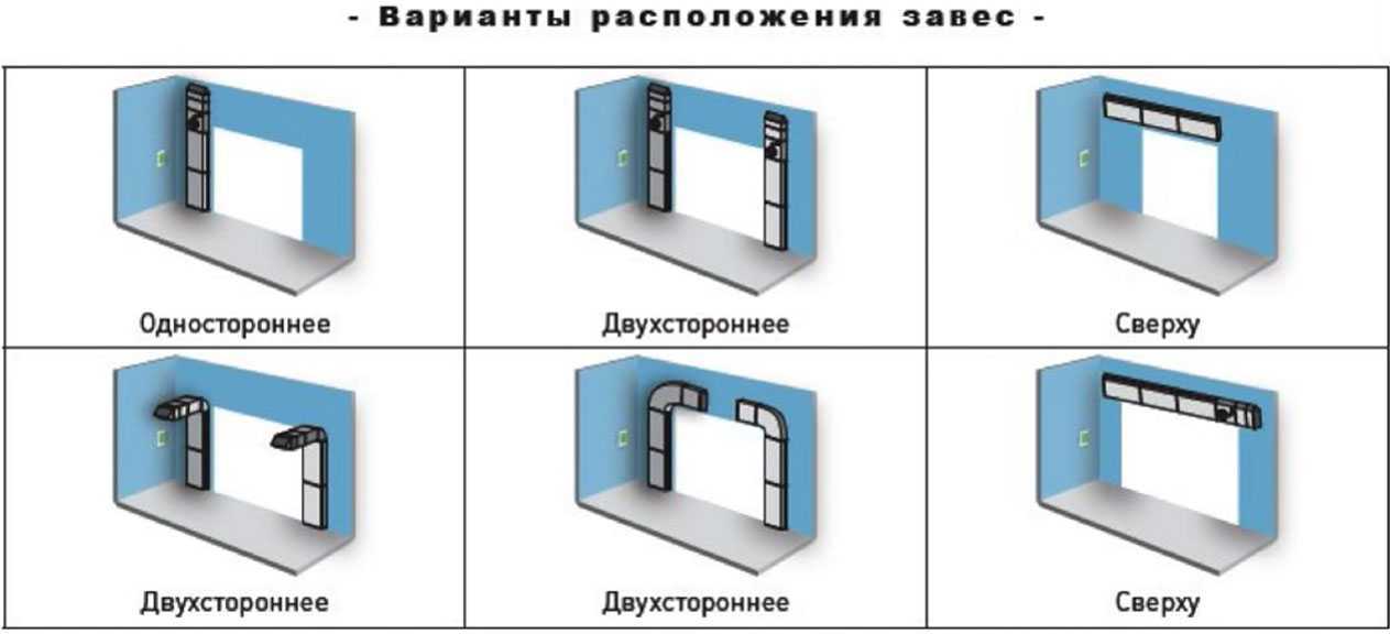Самое главное запомните, что завесы у которых указан горизонтальный способ установки, запрещено монтировать вертикально.
