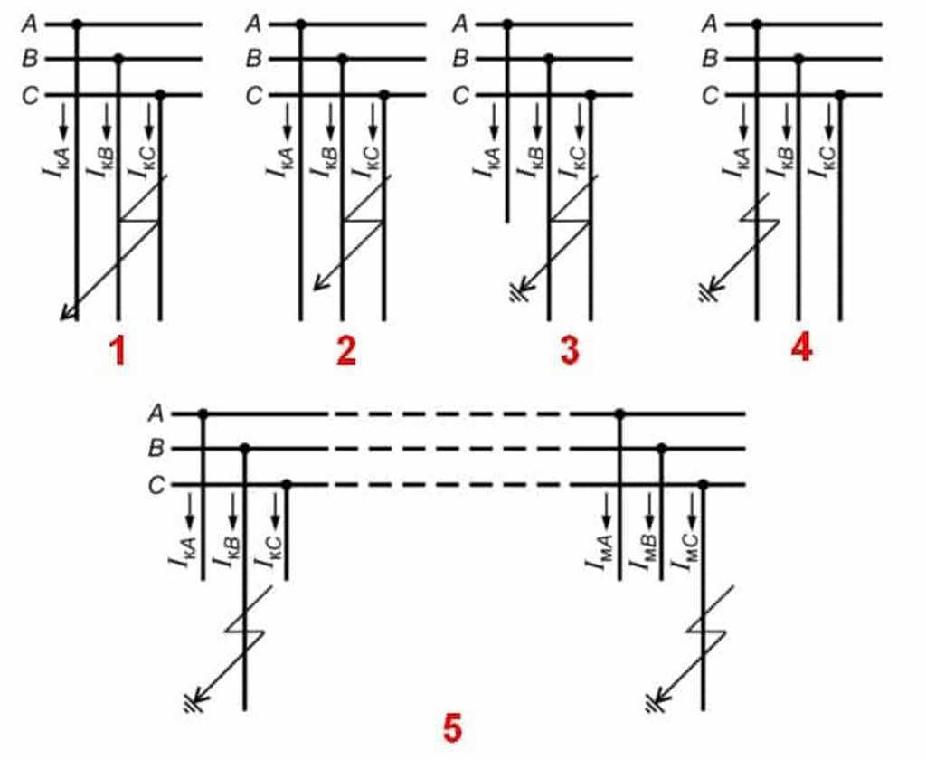К основным видам КЗ, возникающих в трехфазной сети, можно отнести следующие: