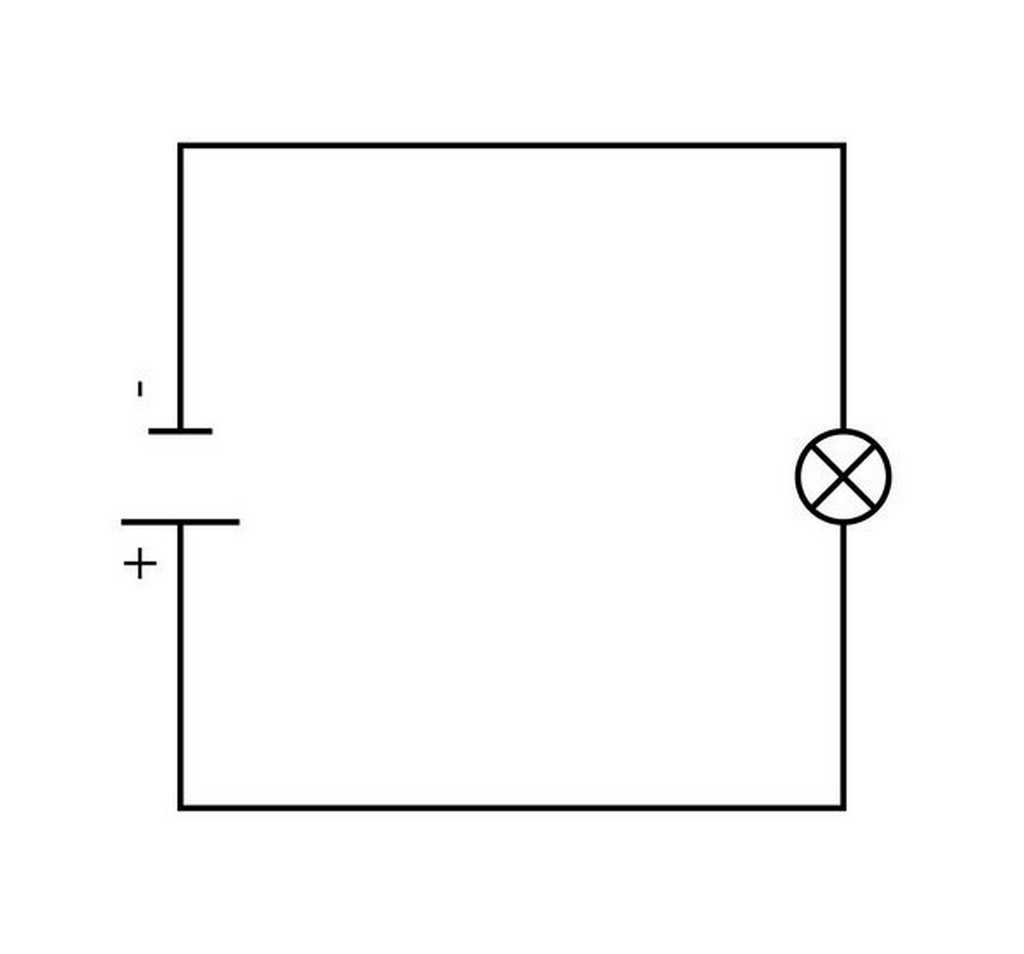 Вот пример нормальной цепи, по которой ток течет от источника к лампе накаливания. На схеме ниже изображен этот процесс.