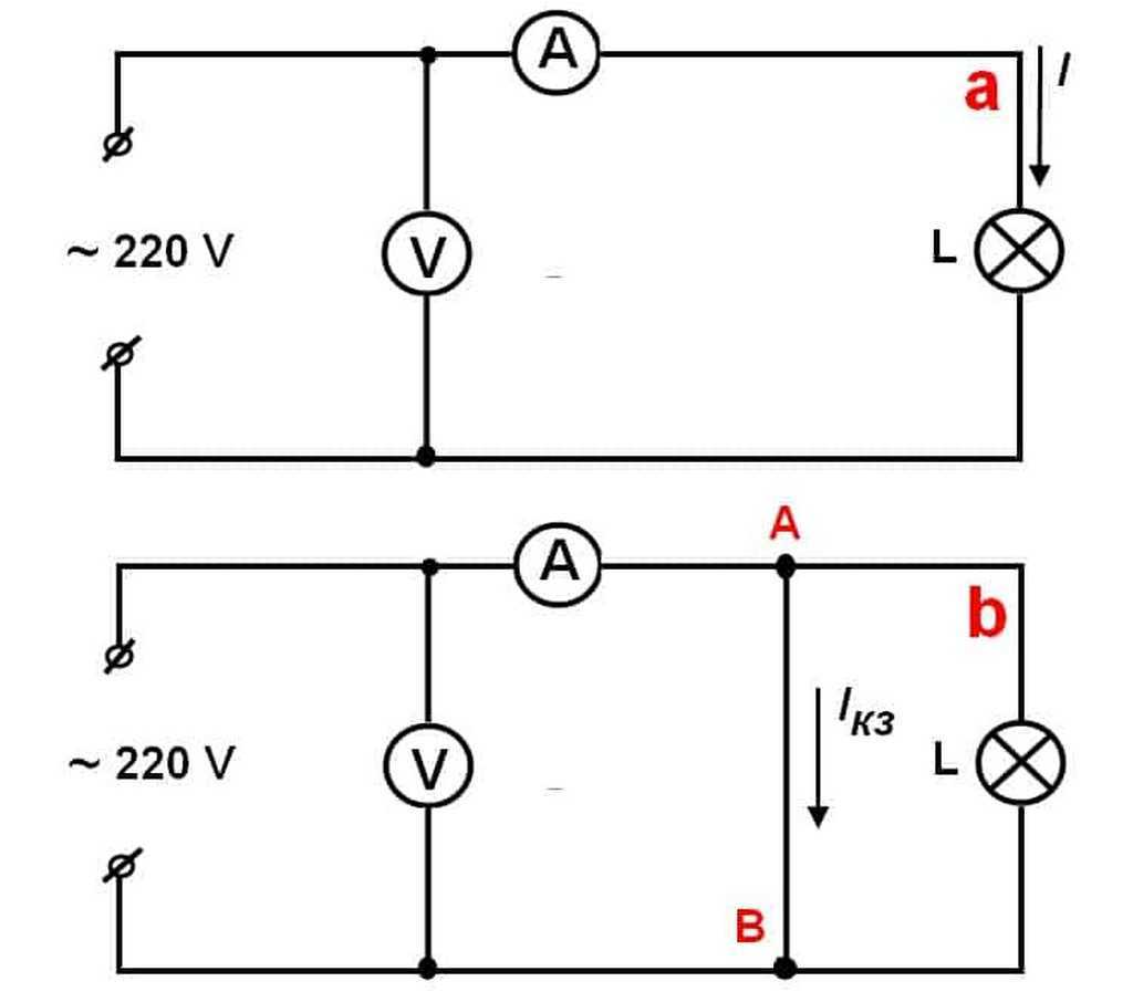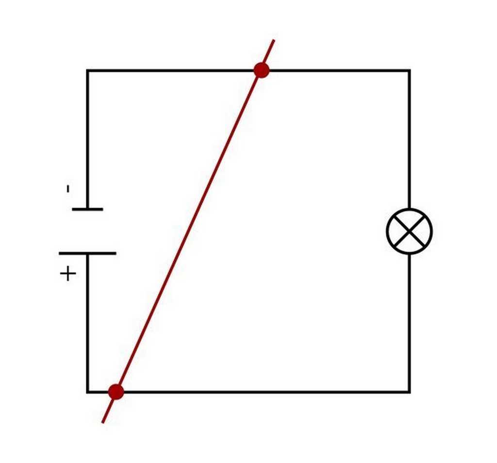 Сопротивление проводников стремится к нулю. Вот почему большая часть электрического тока после замыкания сразу потечет через дополнительный проводник, как бы избегая лампы накаливания с высоким сопротивлением. Результатом будет некорректная работа прибора, потому, что он не получит достаточно тока. И это еще не самый опасный вариант.